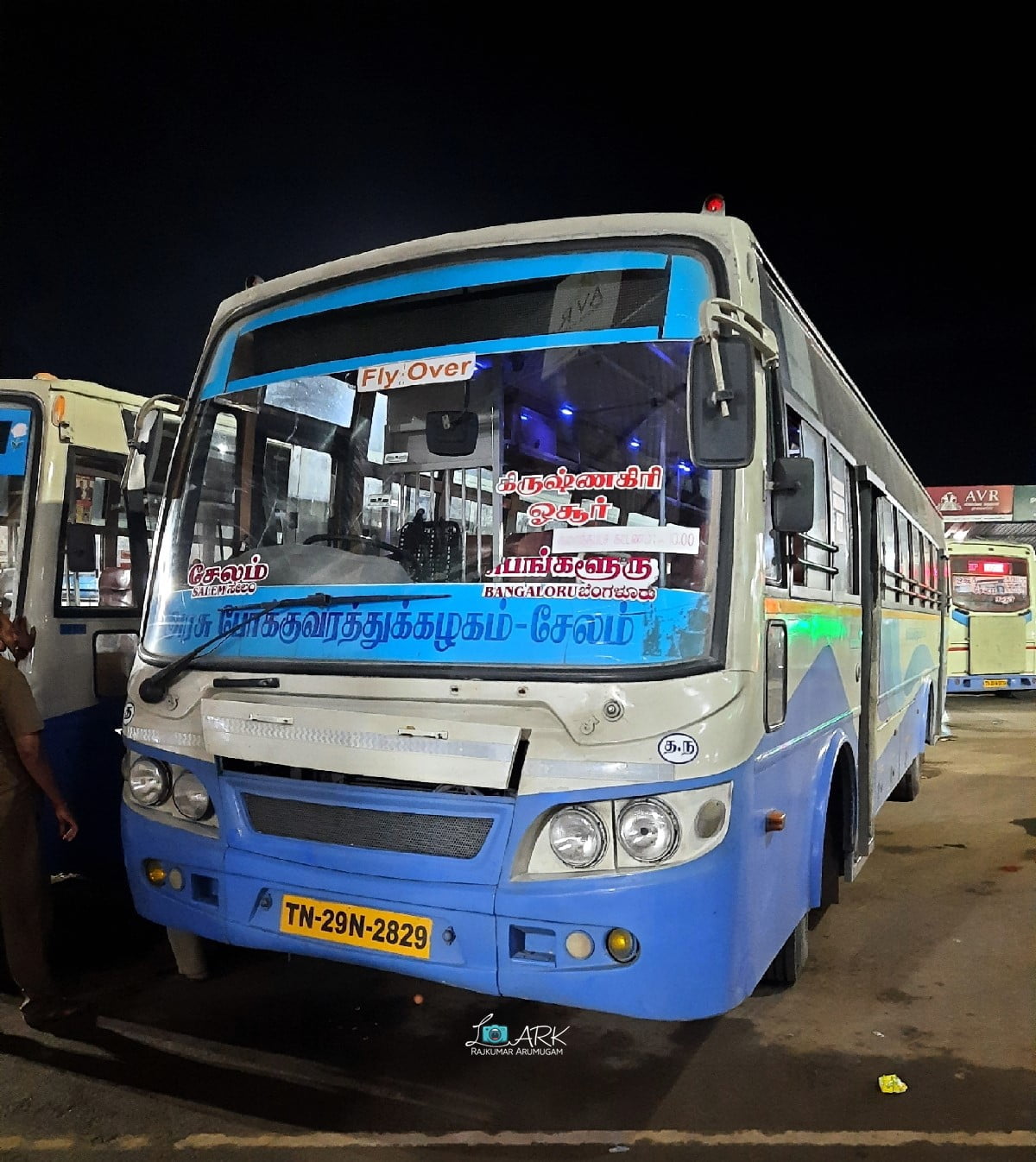 - Bus Timings from Salem : 00:30, 01:00, 01:30, 03:00, 03:45, 04:00, 04:30, 06:15, 07:55, 09:20, 11:50, 13:00, 13:50, 14:30, 15:15, 15:45, 16:30, 17:30, 18:20, 19:40, 21:00, 21:45, 22:00, 23:00