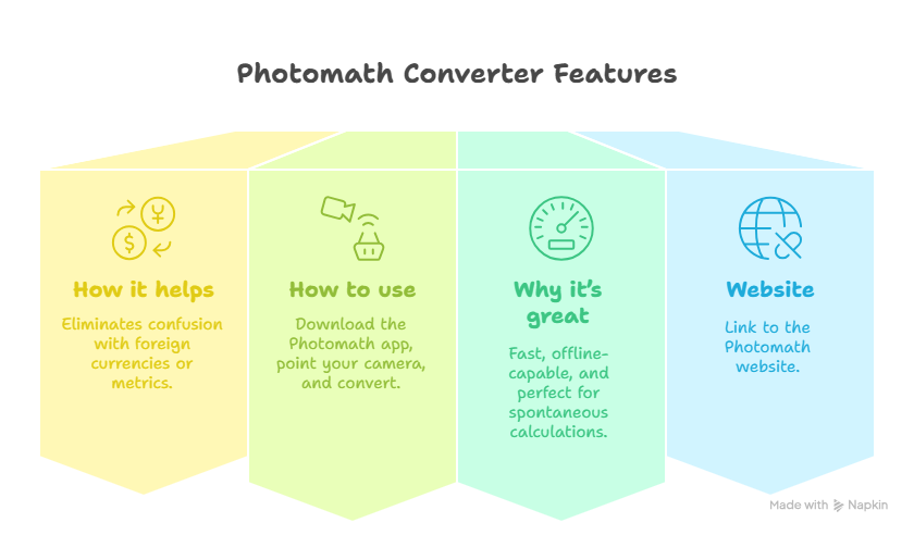 | Photomath | Currency/Measurement Conversion | Scan-and-convert prices | Yes (app-based) | Budget tracking, market shopping |