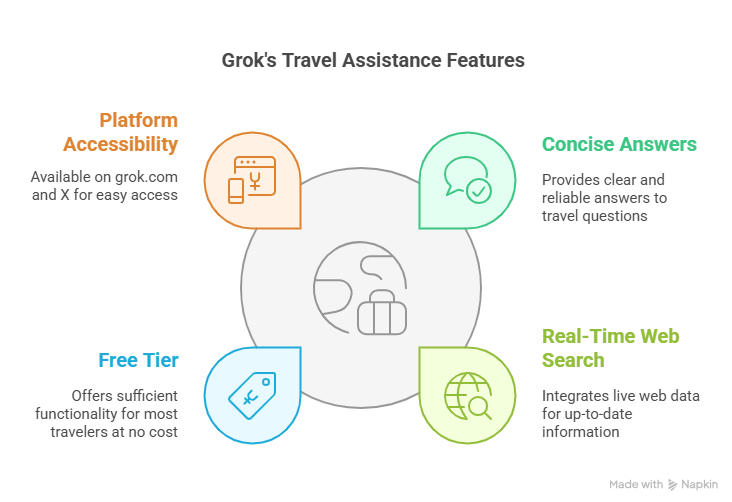 - How to use: Sign up on grok.com or use it via the X platform, and ask specific travel-related questions.