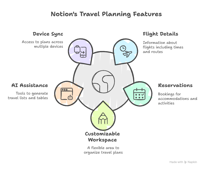 | Notion AI | Trip Organization | Structured travel plans, lists | Partial (syncs offline) | Group travel, detailed planners |